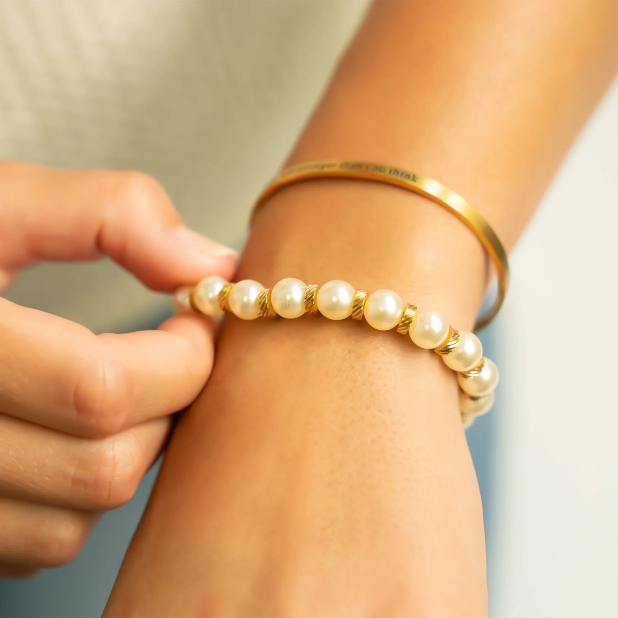 Elevate your everyday stack with a touch of effortless grace. Our Pearl Beaded Bracelet pairs luminous 8mm Kiska glass pearls with a modern yet traditional design, creating a look that feels both delicate and quietly powerful.