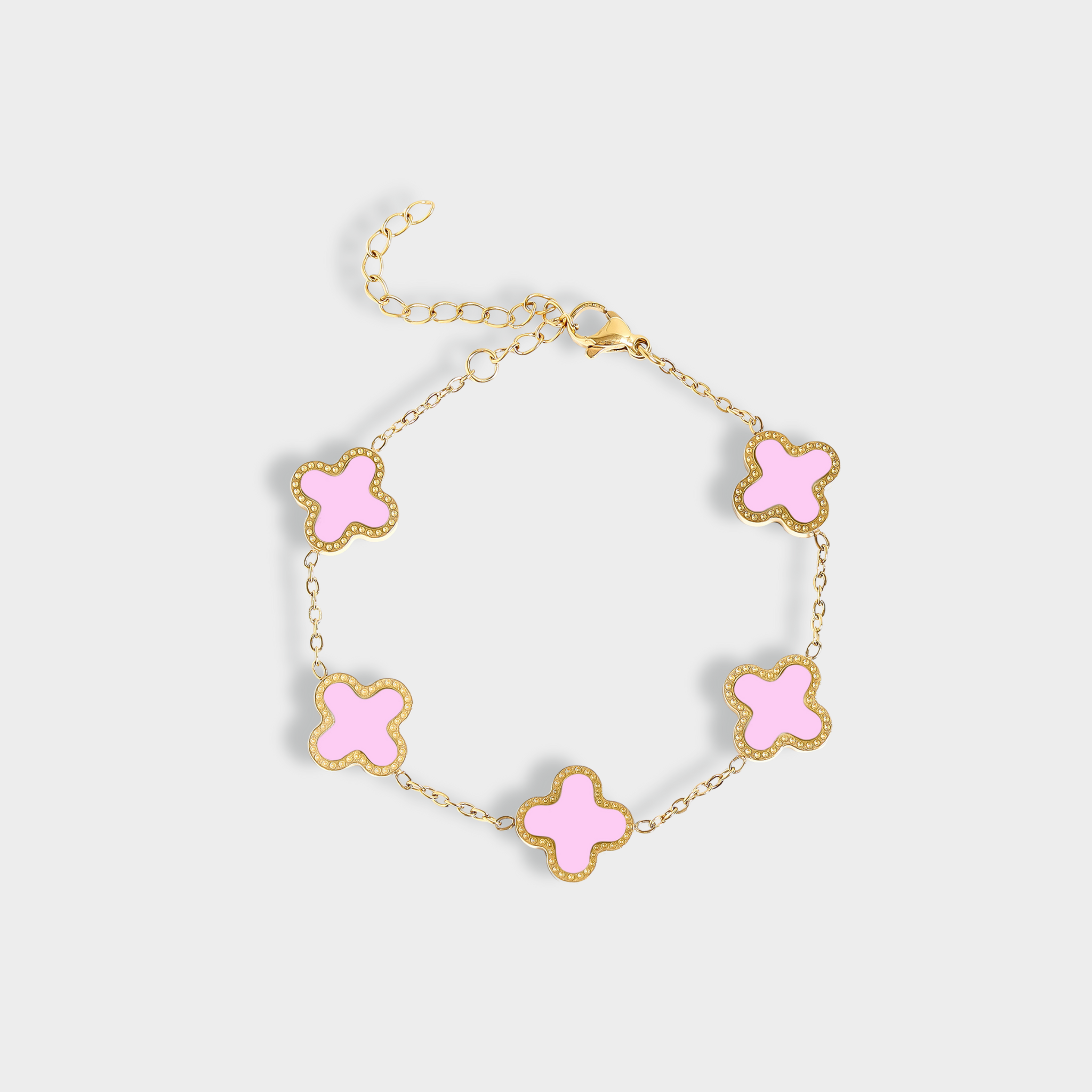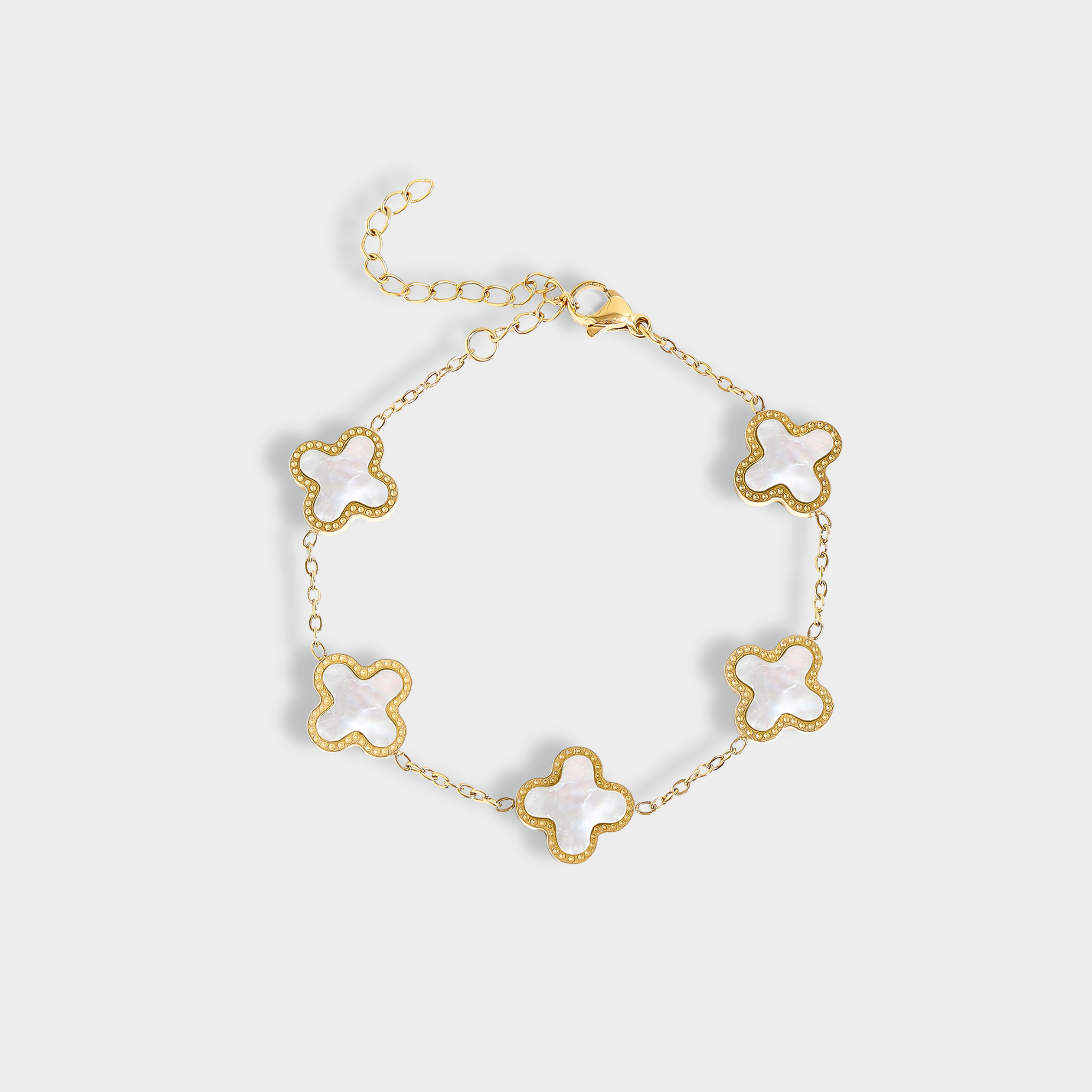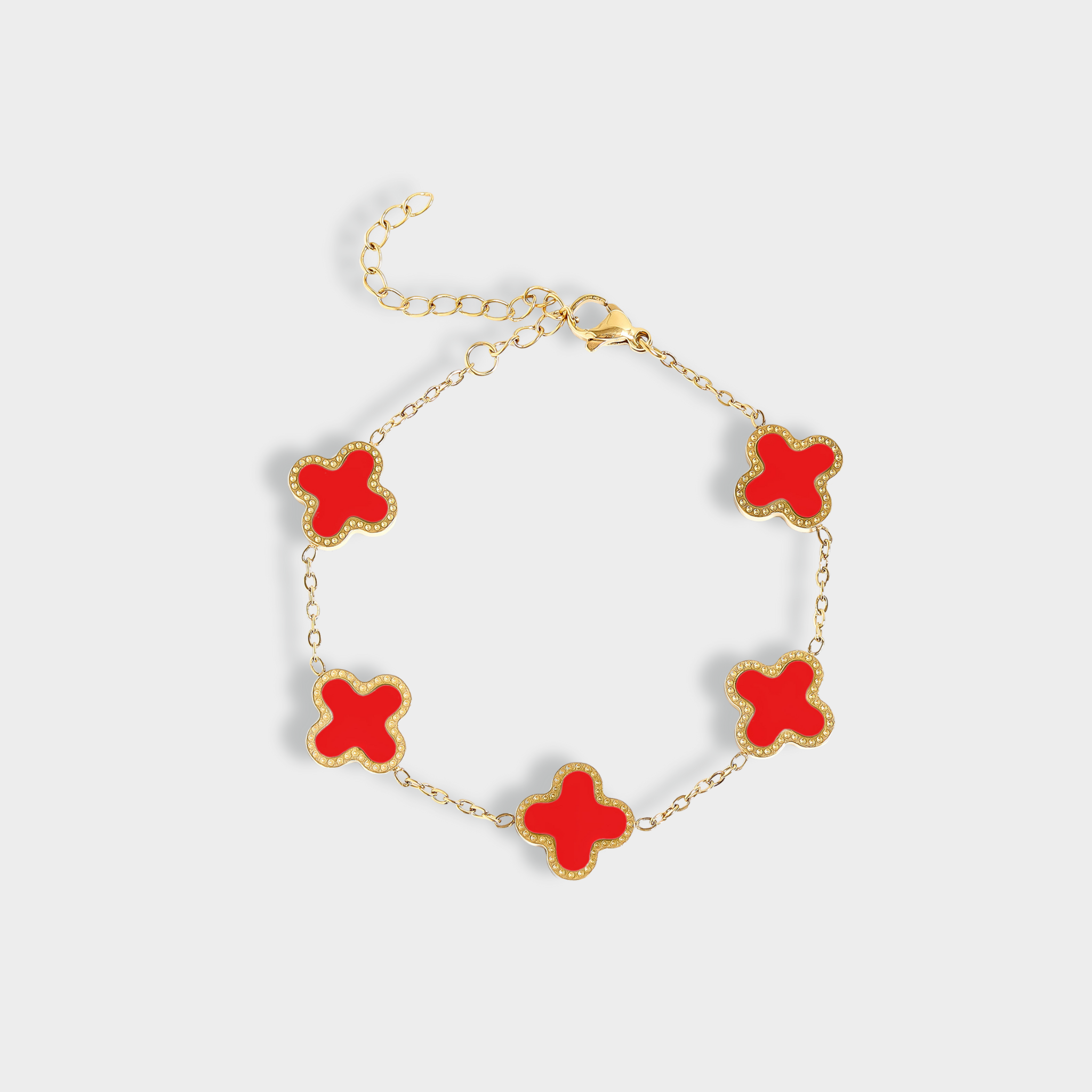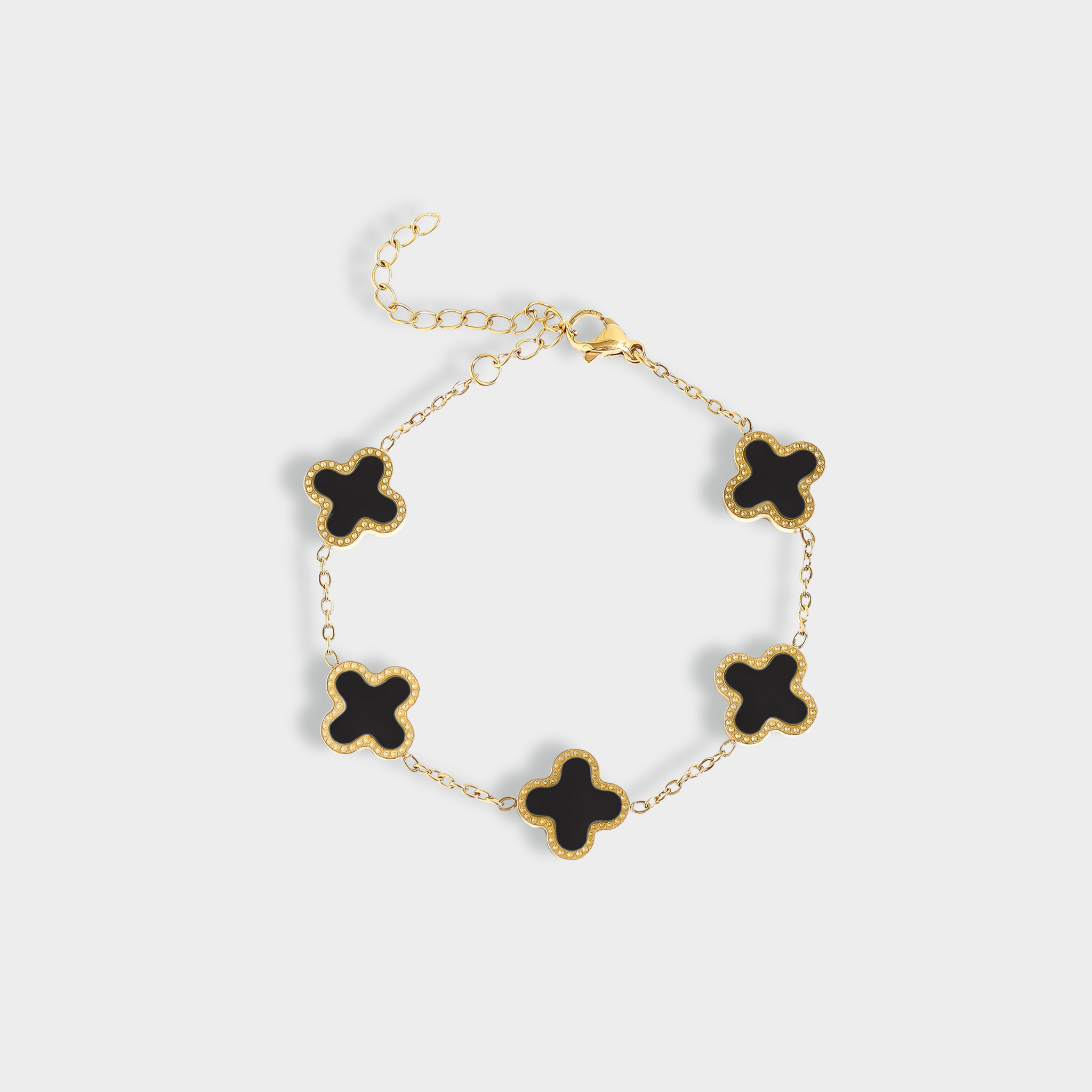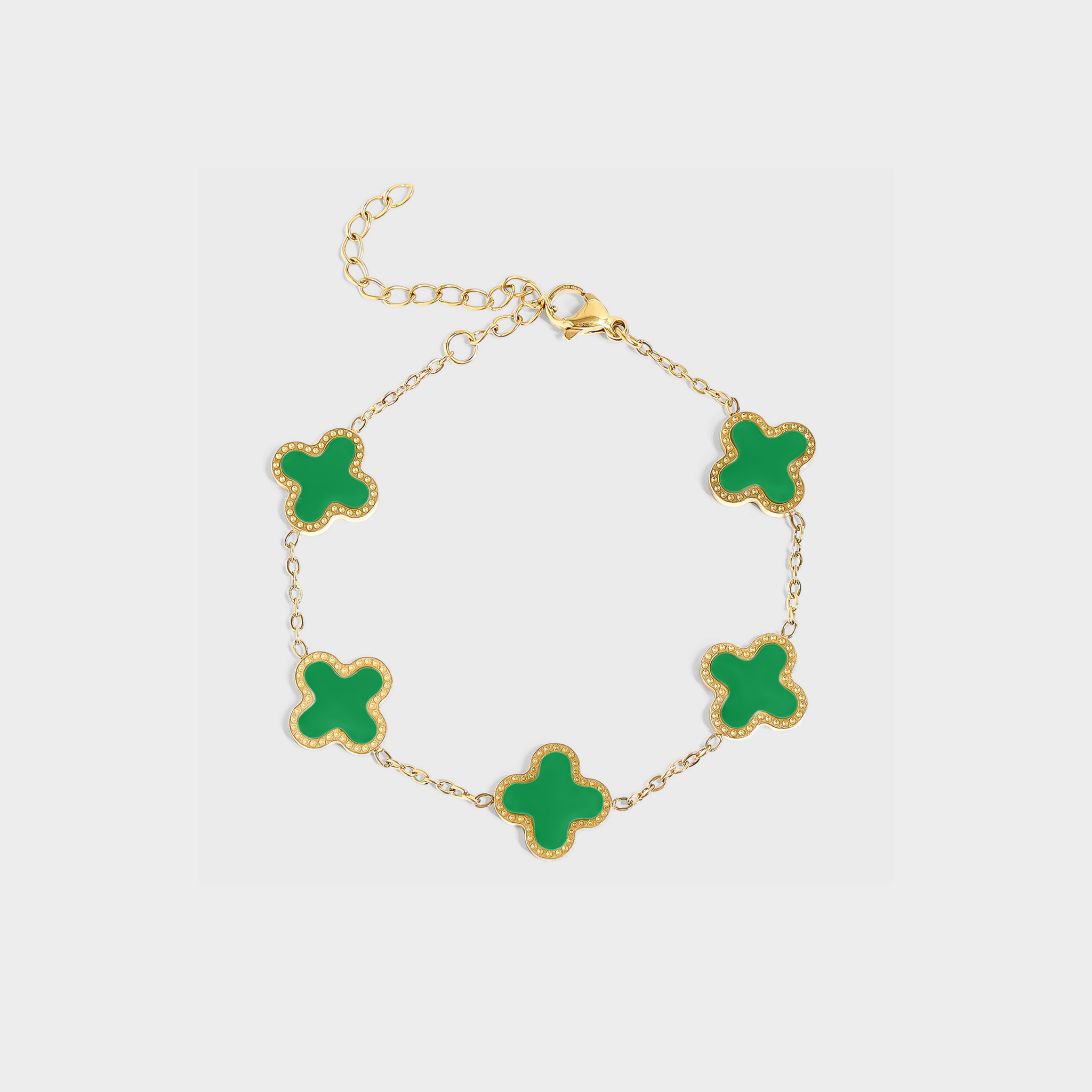 The Lucky Clover Charm Bracelet is your new charm for good fortune and style. With five perfectly shaped clovers, each symbolizing hope, faith, love, and luck, this piece is the perfect way to carry a little bit of positivity wherever you go. Whether you're gifting it to a friend or treating yourself, it's the perfect way to add a touch of charm and a sprinkle of luck to your day!