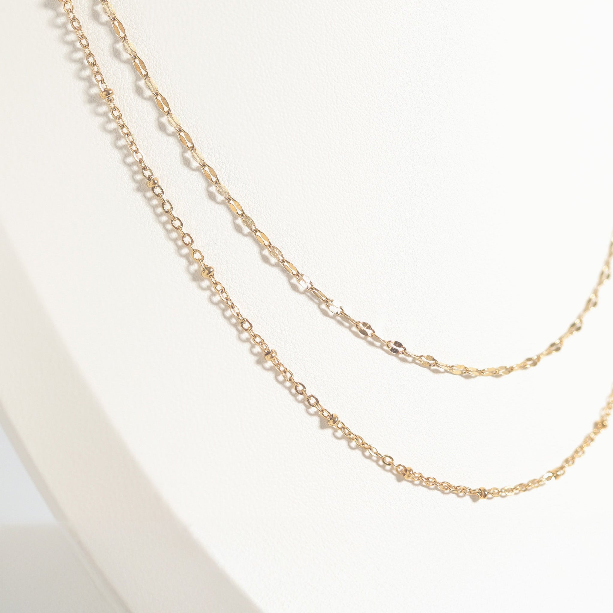 Classic, timeless, and perfect for everyday wear, the Satellite Chain Necklace is a dainty chain necklace for layering or adding charms to complement your everyday look. This necklace is the perfect layering chain to elevate your daily style. Featuring oval links with satellite beads, the satellite chain necklace has been carefully curated to catch and reflect light in all the right areas, ensuring an all-day effortless shine that complements your every move.