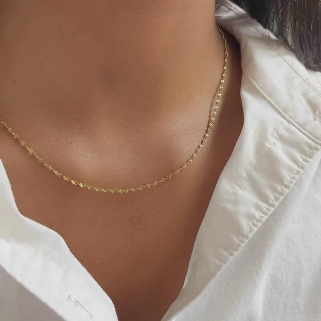 Classic, timeless, and perfect for everyday wear, the Singapore Chain Necklace is a stunning accent chain for layering to complement your everyday look. This necklace is the perfect dainty chain for layering to elevate your style with a carefully curated design to catch and reflect light in all the right areas.
