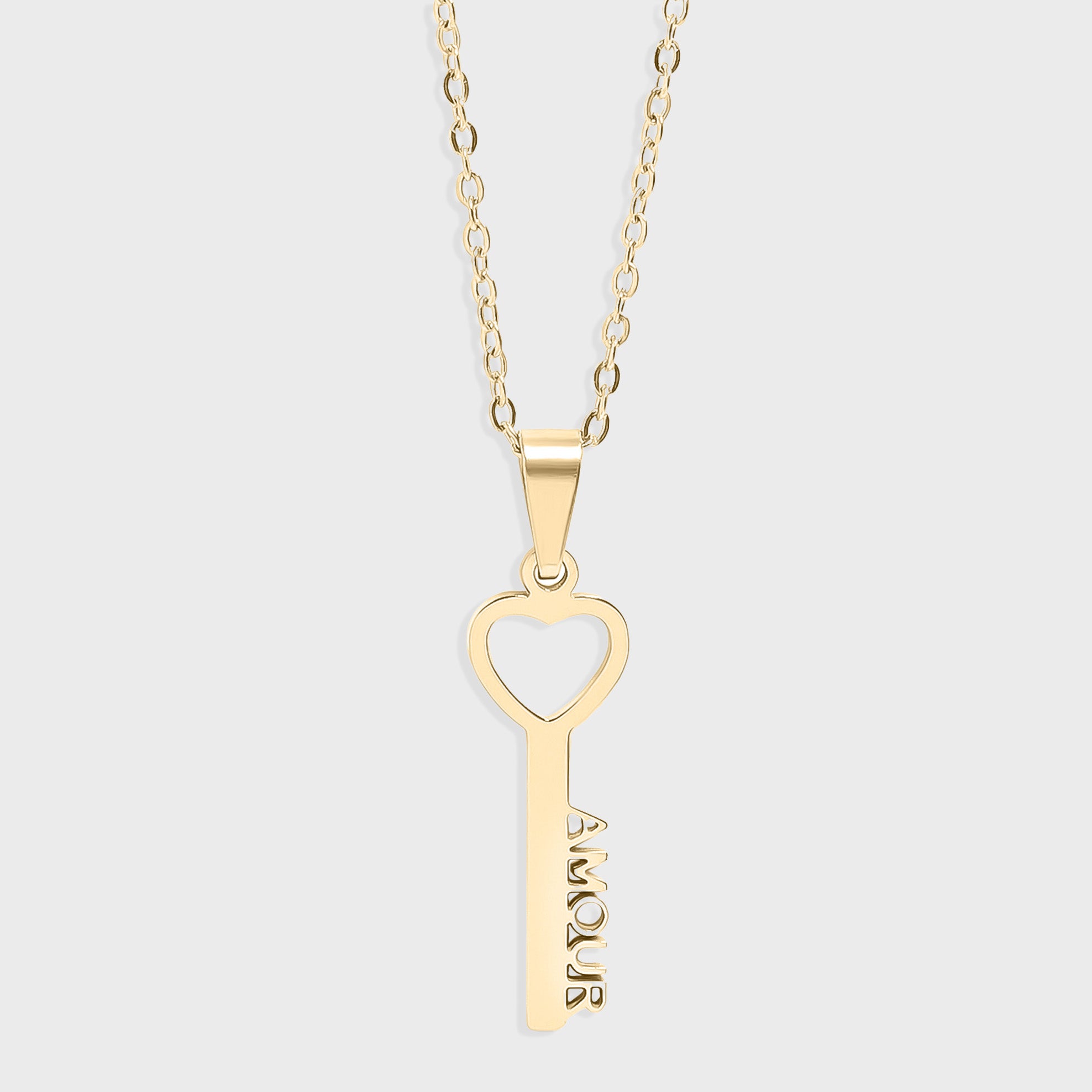 Whether worn alone as a subtle statement or layered with other necklaces, this pendant adds a touch of sophistication and charm to any outfit. With its timeless appeal and lasting durability, the Amour Key Necklace is more than just jewelry – it’s a symbol of love, connection, and endless possibilities.