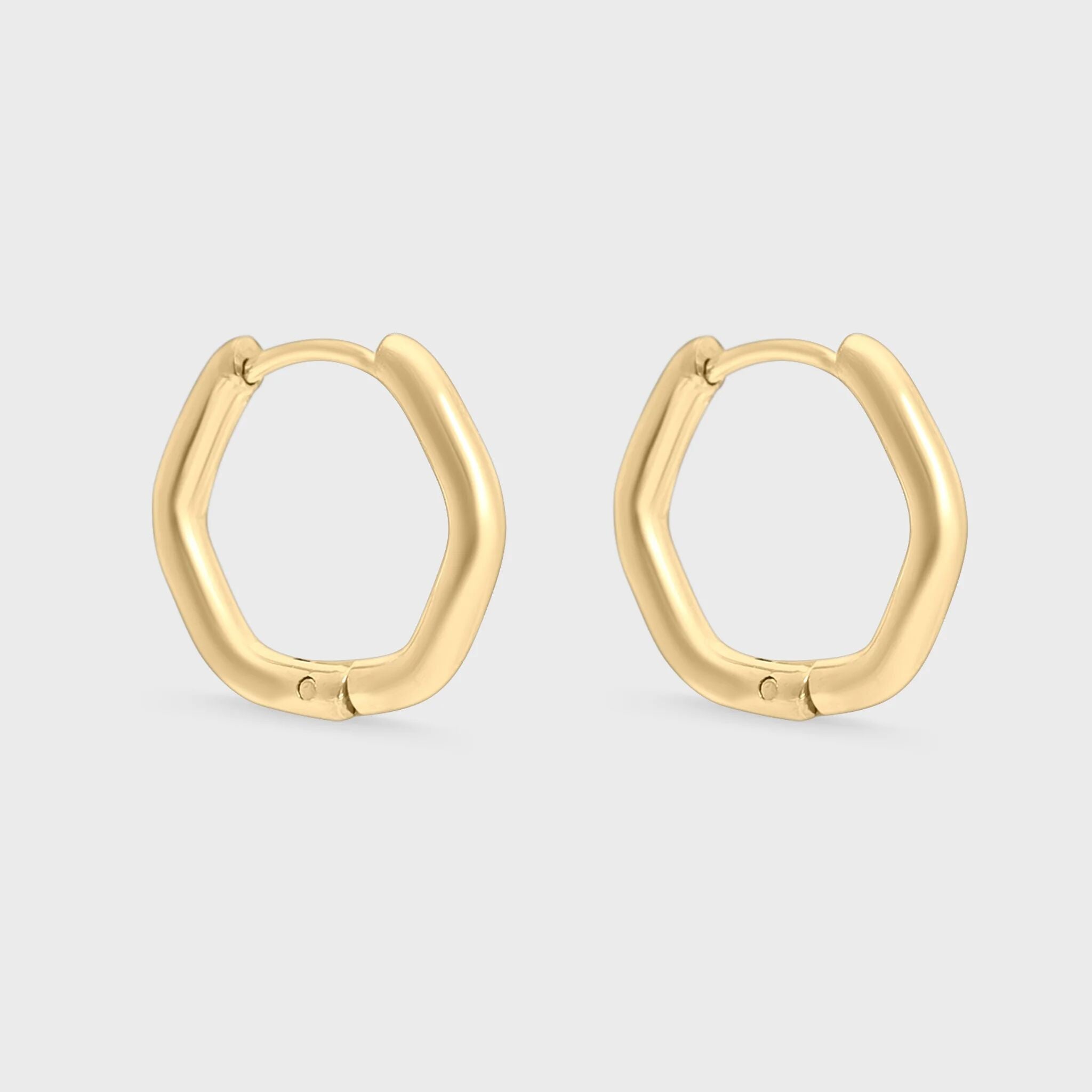 Elevate your style with our Rounded Geometric Huggie Hoop Earrings, where modern shape meets effortless sophistication. Their softly sculpted, organic form brings a fresh twist to the classic hoop, creating a look that’s both minimal and undeniably chic. Lightweight and versatile, these huggies are made for everyday wear—perfect on their own or paired into your favorite stacked-earring combinations.