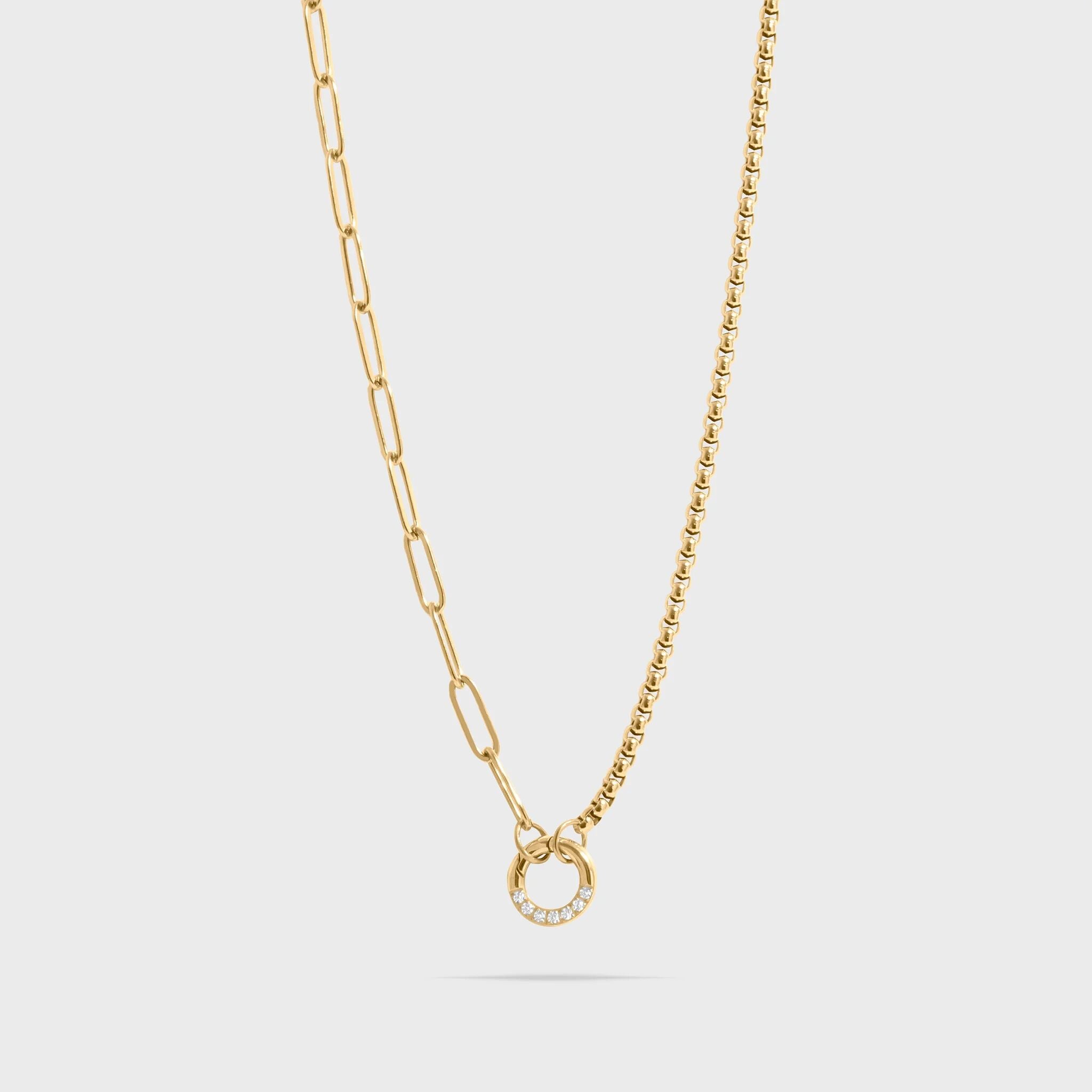 Our Split Chain with Stone Charm Holder is a modern split chain meets a radiant charm holder designed to carry the symbols that matter most to you. Add your favorite charm and create a piece that tells your story with quiet beauty!