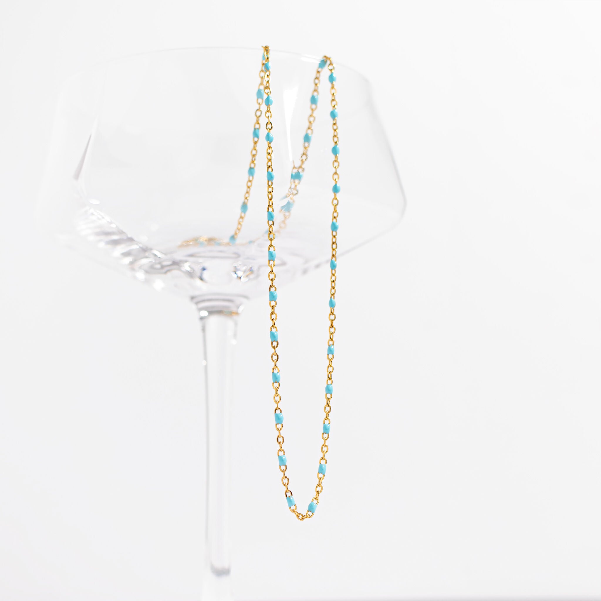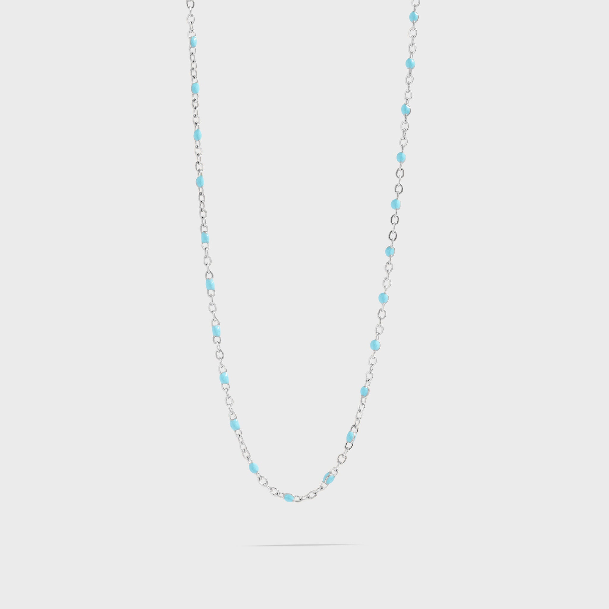 Bright, fresh, and subtly bold. The Turquoise Confetti Necklace delivers a clean, contemporary look with a pop or turquoise. Its delicate design makes it versatile for layering or wearing solo, bringing effortless style to your everyday wardrobe!