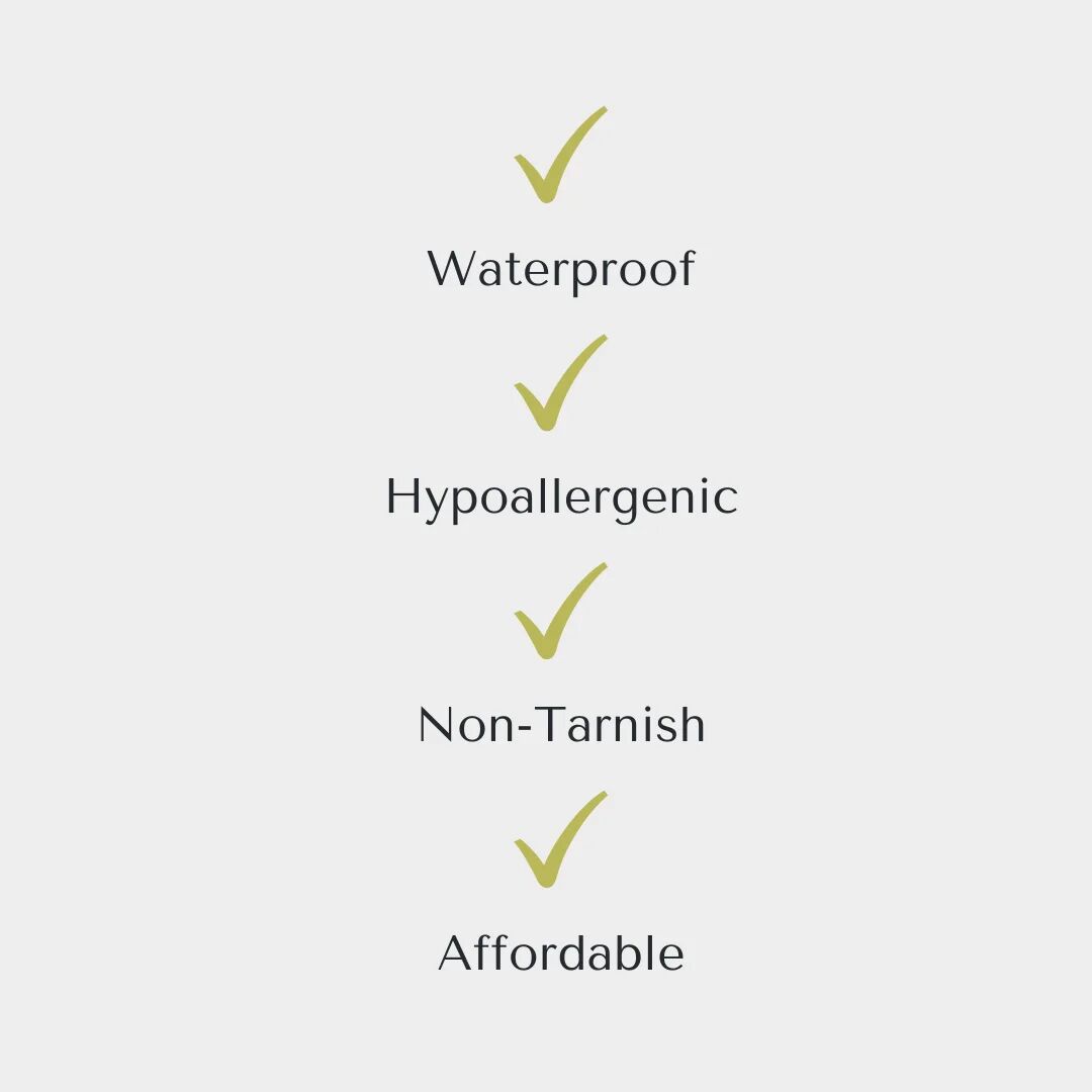 - 100% Waterproof, Non-tarnish, Hypoallergenic