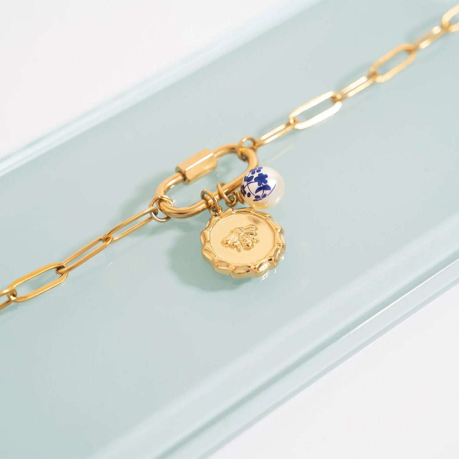 Delicate artistry meets timeless elegance in our Blue & White Pattern Floral Pearl Charm. Featuring a classic blue-and-white floral pattern with a lustrous pearl, this charm adds a refined and feminine touch to any bracelet or necklace. Perfect for layering with other charms or as a standalone statement piece.