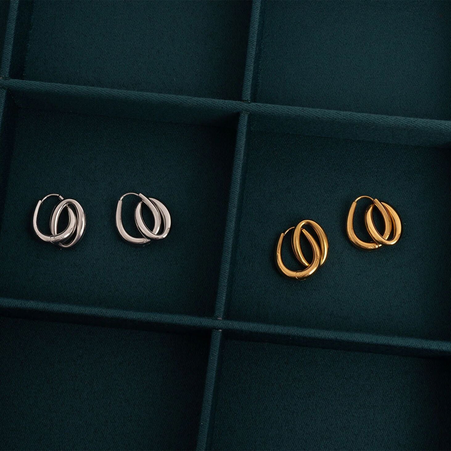 These double dangle earrings offer fluid movement and modern elegance, catching the light with every step. Their layered design brings a bold yet refined touch, perfect for elevating any look!