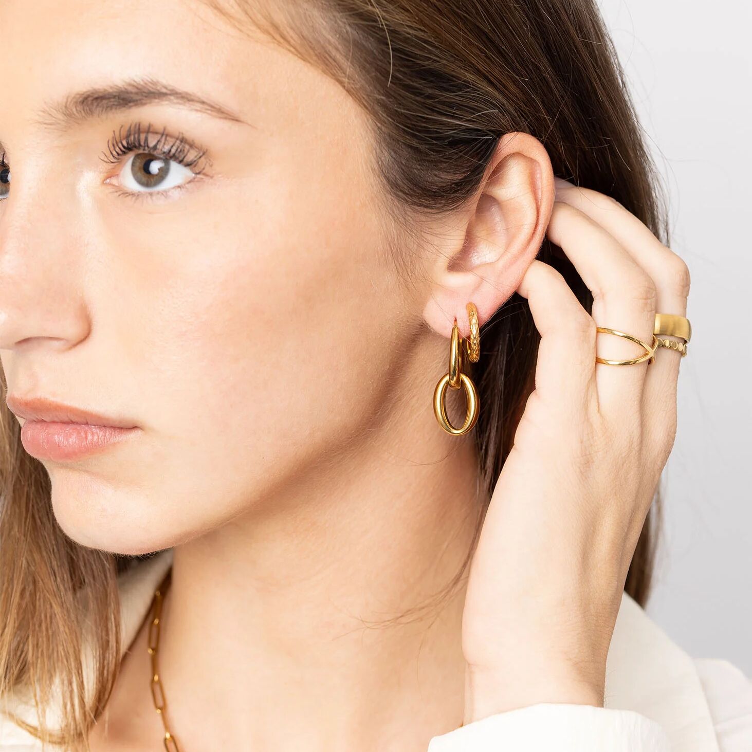 Crafted for life’s every moment, our 18K Gold jewelry is PVD coated over 316L surgical-grade stainless steel to bring you a non-tarnish, hypoallergenic finish that’s gentle on skin and perfect for daily wear. Plus, it comes with our Lifetime Color Guarantee—meaning it’s made to shine for years to come!