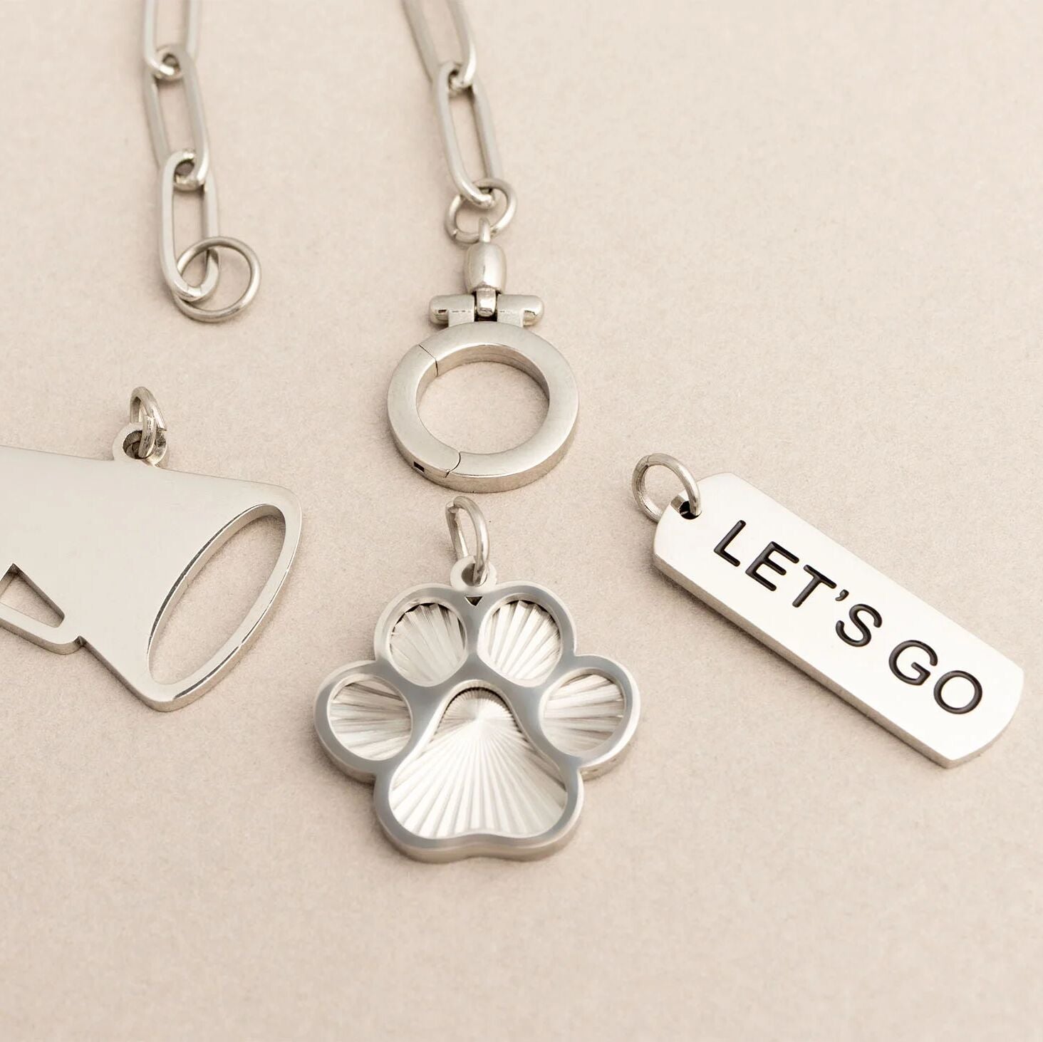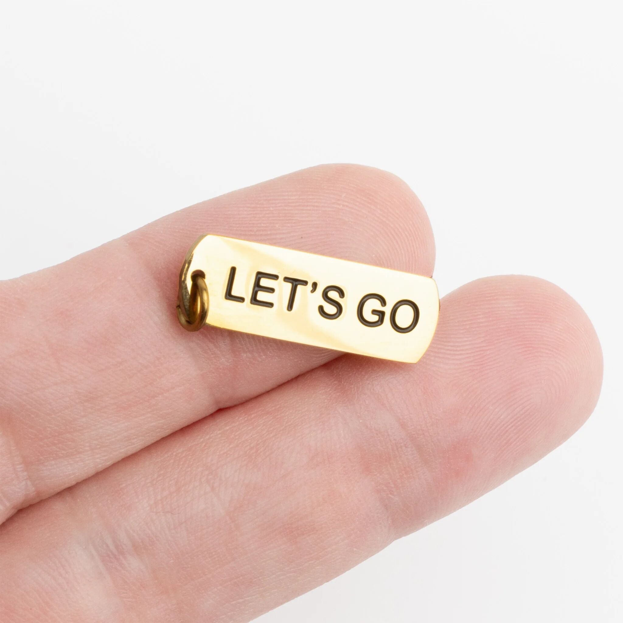 Add a little motivation to your day with this "Let's Go" script charm. Its design makes it feel personal and inspiring, perfect on a bracelet or necklace you wear every day. A small piece that sparks big energy wherever you go!