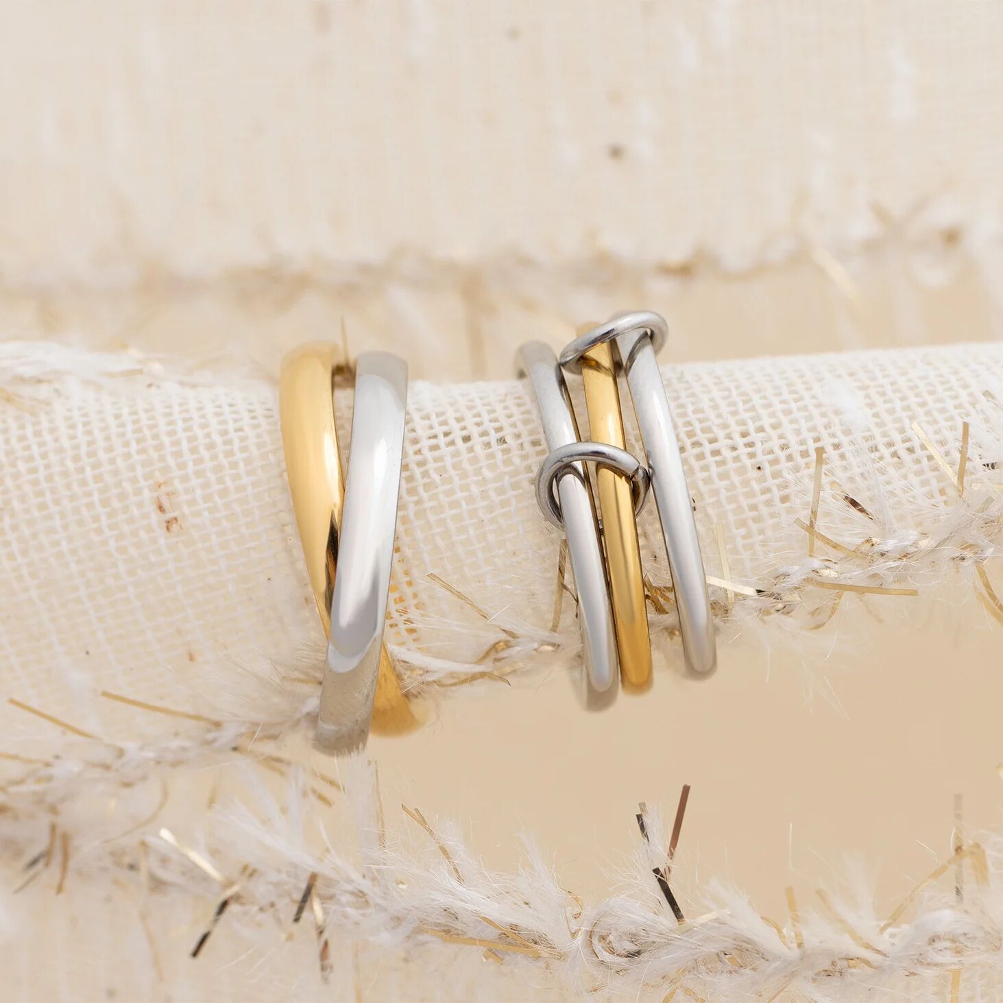Discover unity in contrast with our Mixed Metal Intertwined Ring, where gold and silver bands gracefully twist together. Symbolizing balance and connection, it's a timeless piece for those who value both strength and elegance.