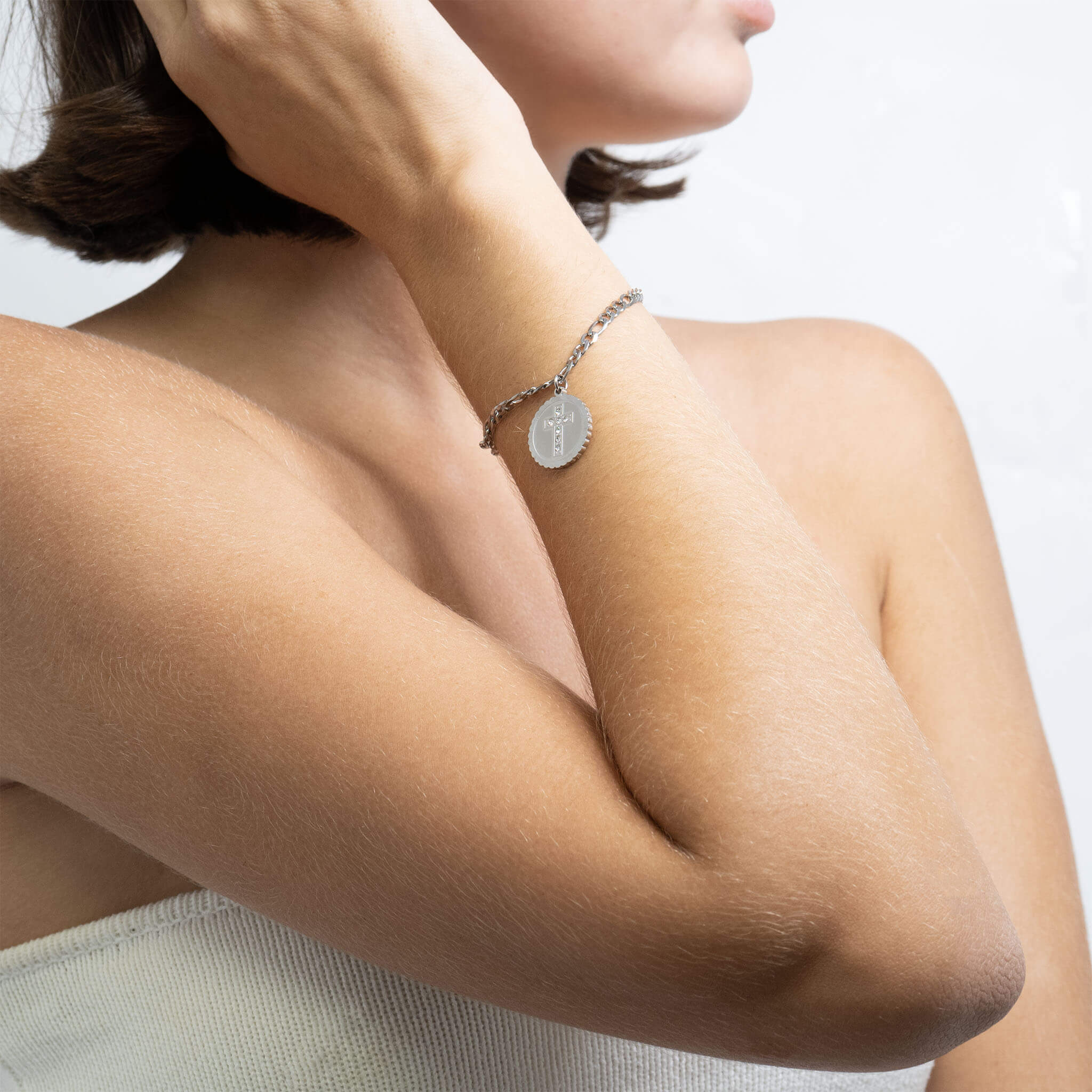 Carry a reminder of grace wherever you go. Our Redeeming Love Cross Charm is designed for the woman who wears her faith with quiet confidence and a heart full of hope. The soft circular medallion cradles a delicately studded cross—timeless, classic, and anchored in meaning.