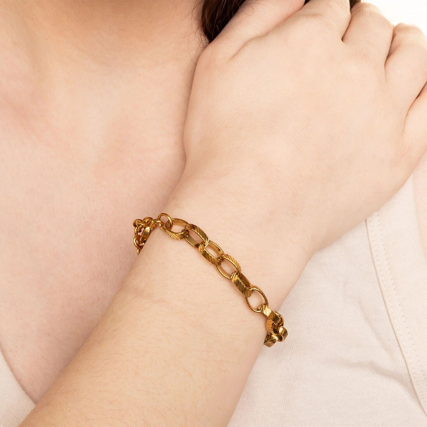 Crafted for life’s every moment, our 18K Gold jewelry is PVD coated over 316L surgical-grade stainless steel to bring you a non-tarnish, hypoallergenic finish that’s gentle on skin and perfect for daily wear. Plus, it comes with our Lifetime Color Guarantee—meaning it’s made to shine for years to come!