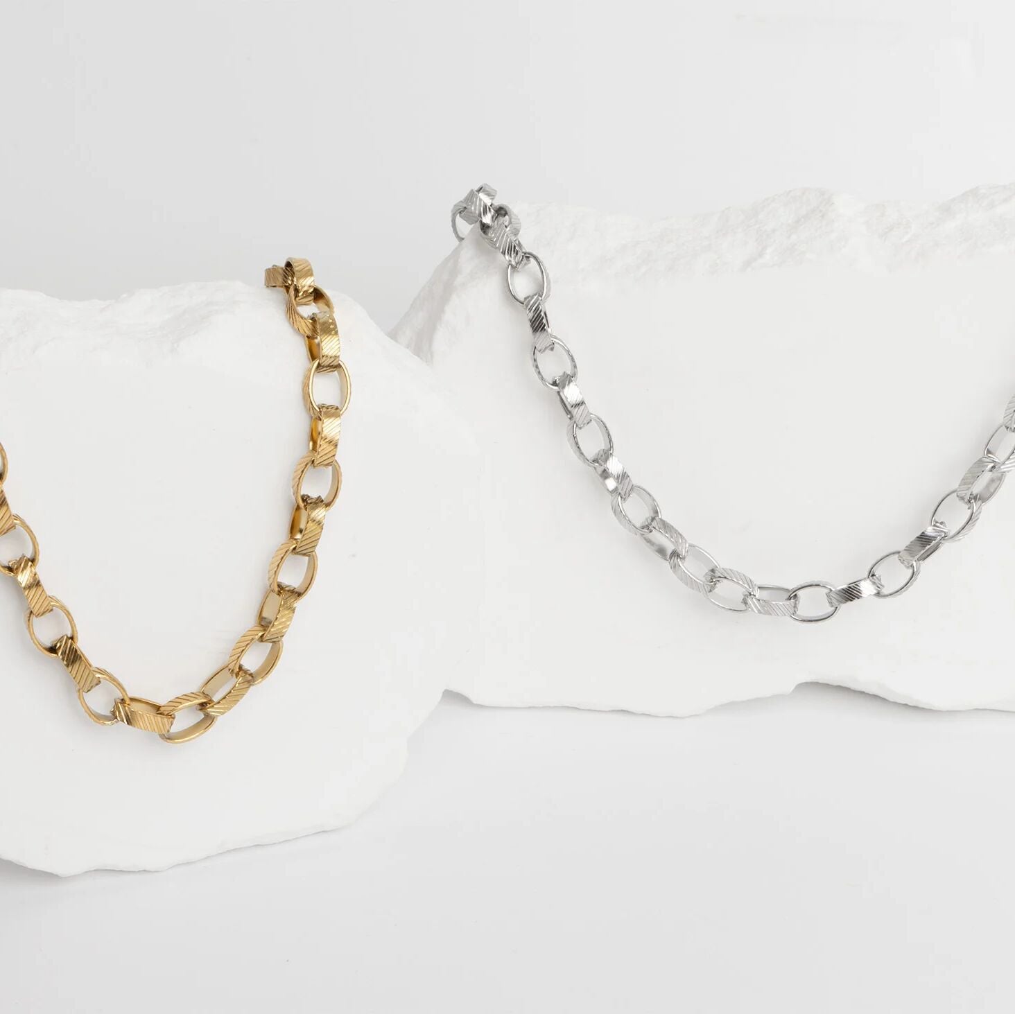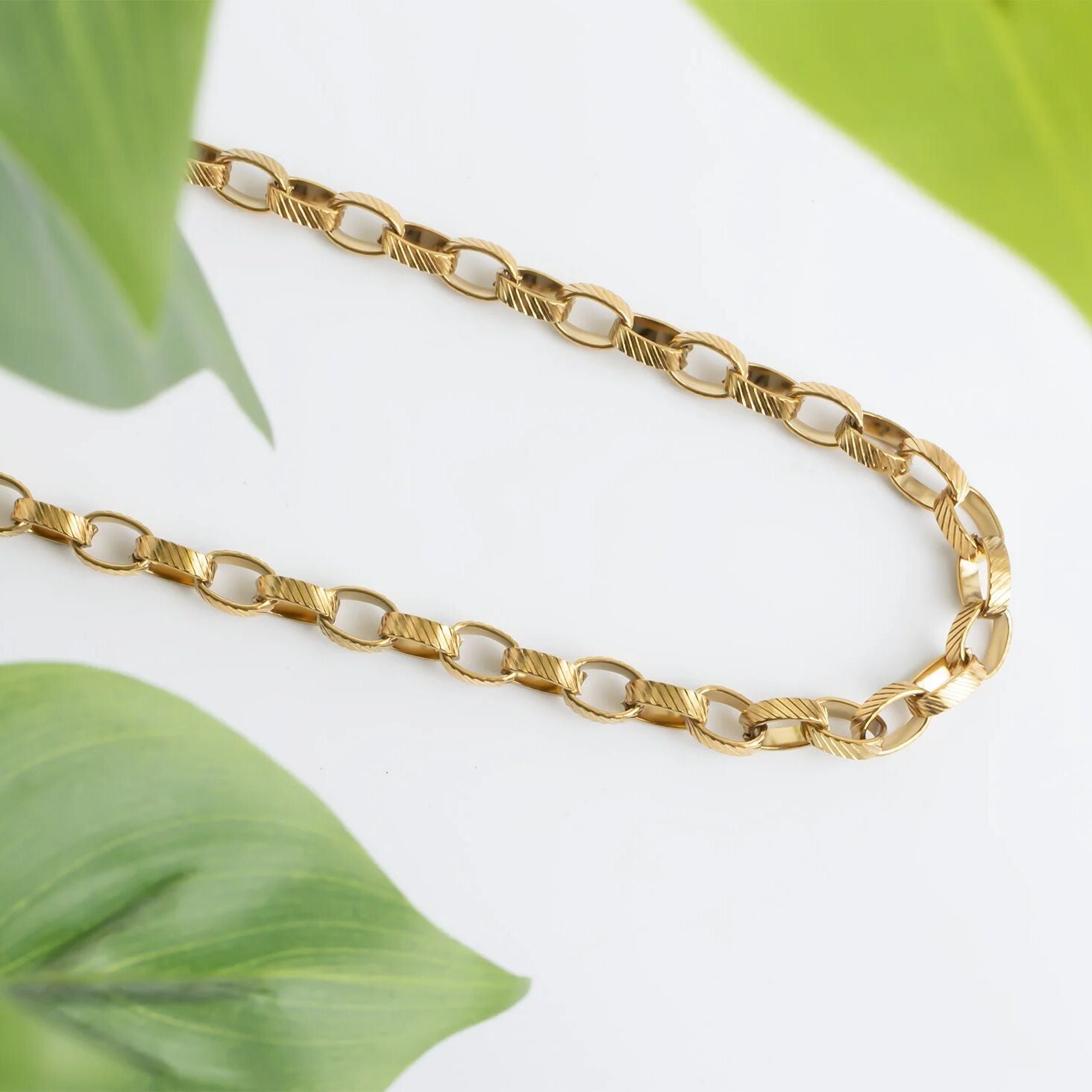 This Thick Oval Chain Necklace is a go-to piece you'll reach for every day. Its bold, simple design makes it easy to wear alone or layer with your favorite pieces. Durable and stylish, it's made to move with you from morning coffee to evening plans!
