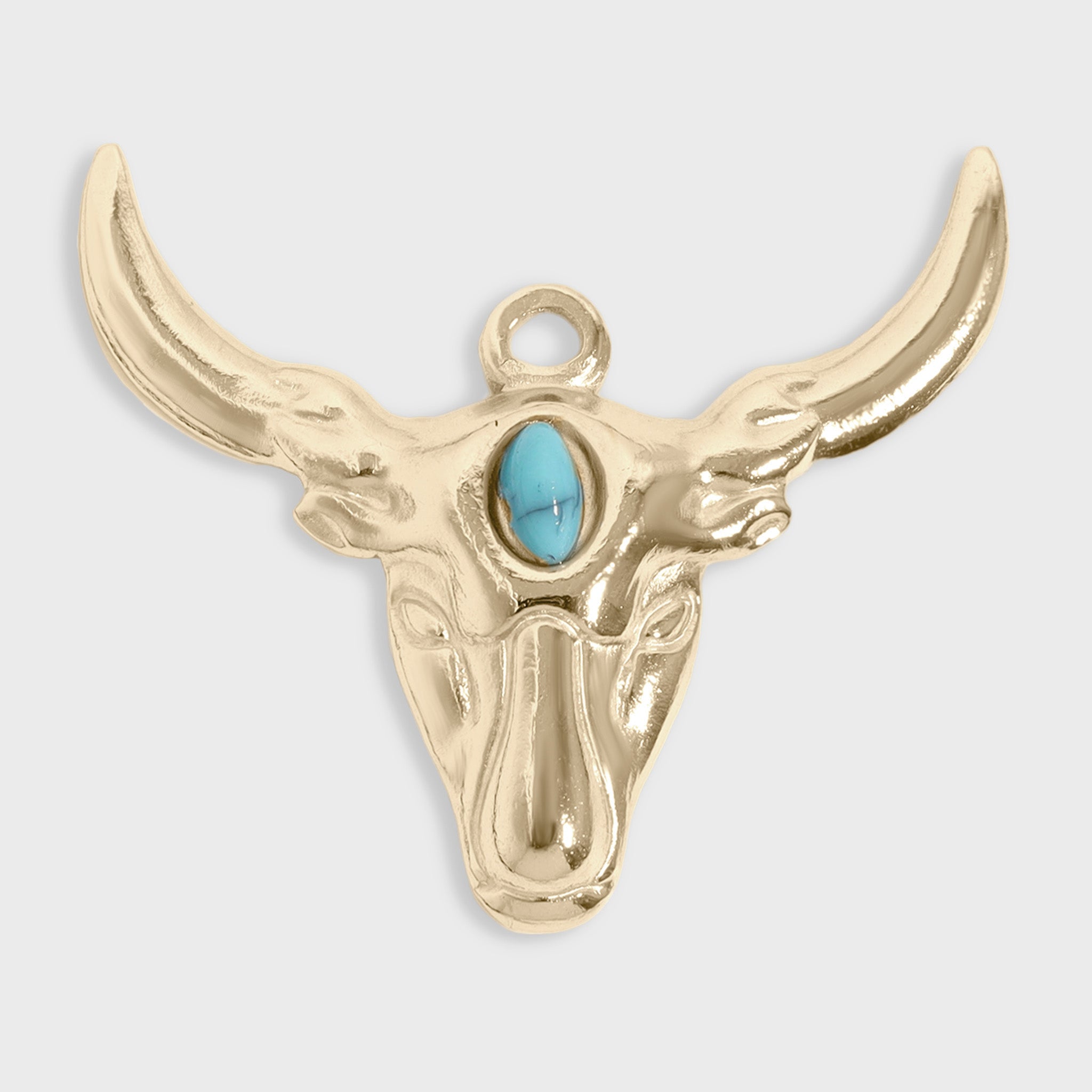 Inspired by the spirit of the American West, the Turquoise Longhorn Charm is a striking symbol of strength, freedom, and individuality. Featuring a bold longhorn accented with a vibrant turquoise stone, this charm brings a touch of rustic elegance to any jewelry piece. Whether worn alone, or layered it adds character, meaning, and a timeless southwestern flair to your jewelry box!