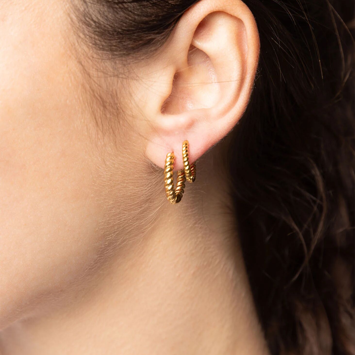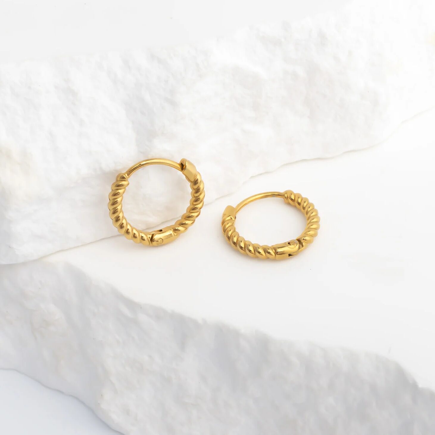 The Twisted Hoops offer a fresh take on a timeless classic with their elegant, sculptural twist. Their subtle texture catches the light beautifully, adding dimension and movement to a simple silhouette. Designed for effortless wear, they bring a refined touch of character to both everyday looks and special moments!