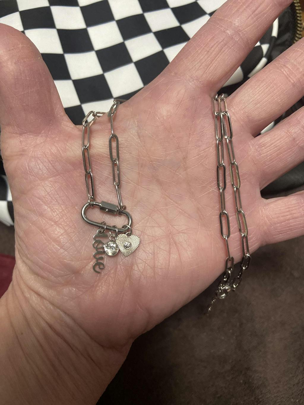 Our "Love" Paperclip Charm Necklace is the perfect way to add a little heart to your style! Featuring a chic paperclip chain and a sleek carabiner, this necklace is elevated with bold “love” themed charms that capture the essence of affection in a modern, minimalist design. Whether you're gifting it to someone special or treating yourself, this necklace is a stylish reminder that love is always in style!